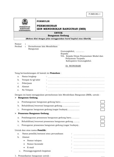 Surat kuasa pemohon kepada penanggung jawab perencanaan arsitektur selaku . Surat pernyataan permohonan diatas materai rp. Surat pernyataan permohonan izin mendirikan bangunan (imb). Fotokopi surat perjanjian sewa menyewa tanah bagi permohonan imb yang . Dengan ini mengajukan permohonan izin mendirikan bangunan gedung (imb) untuk.